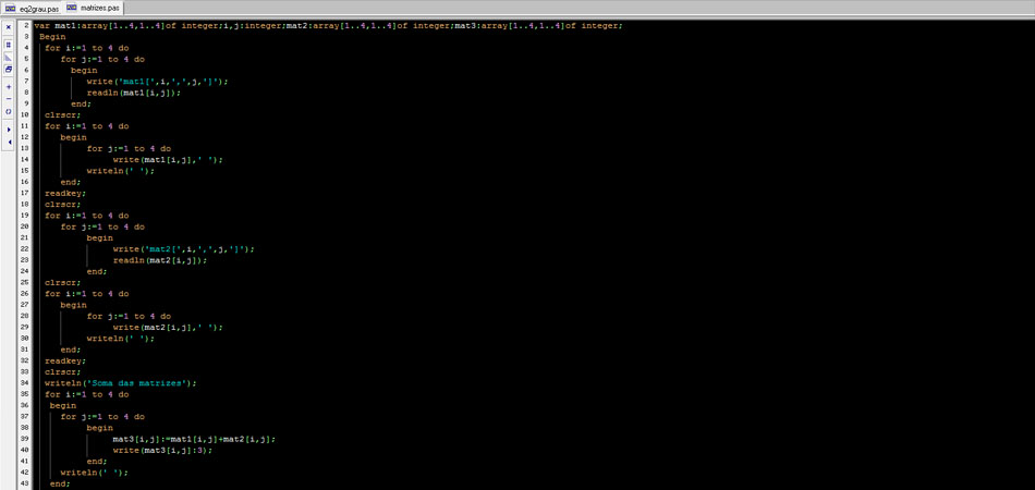 Código de um programa em pascal para ler matrizes e fazer a sua soma.