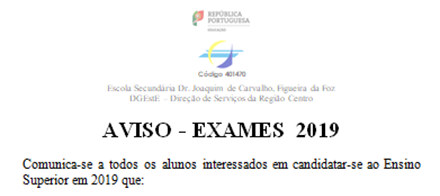 AVISO - EXAMES 2019