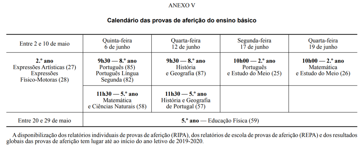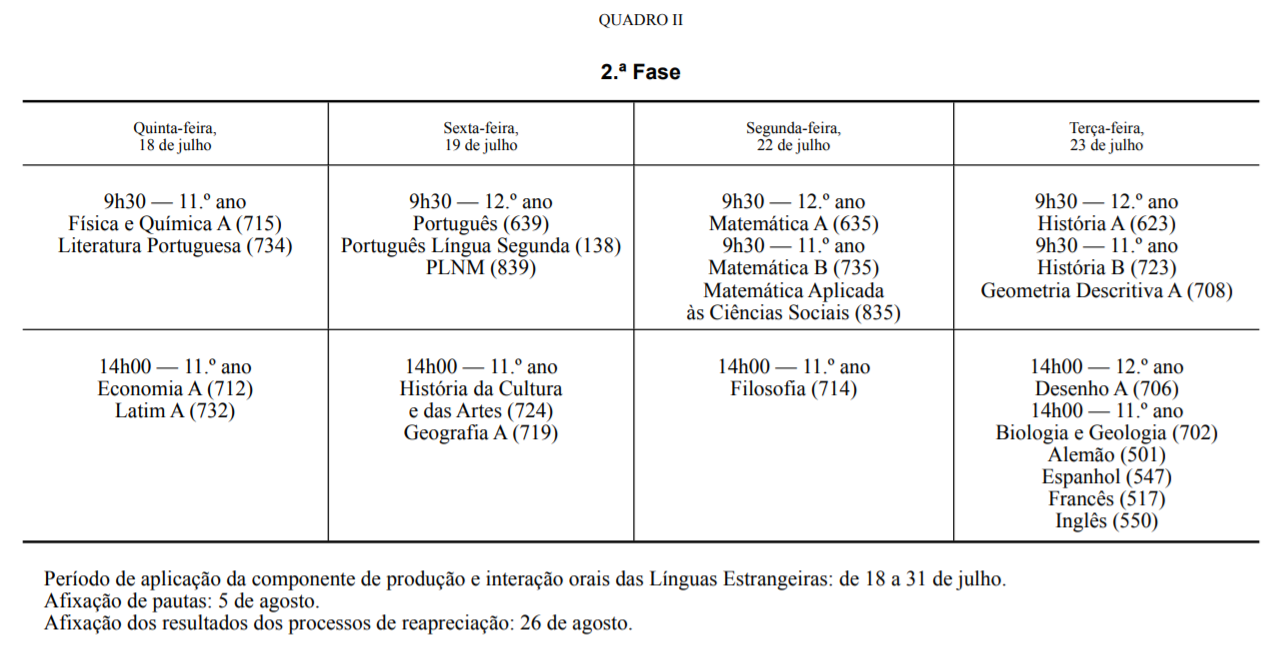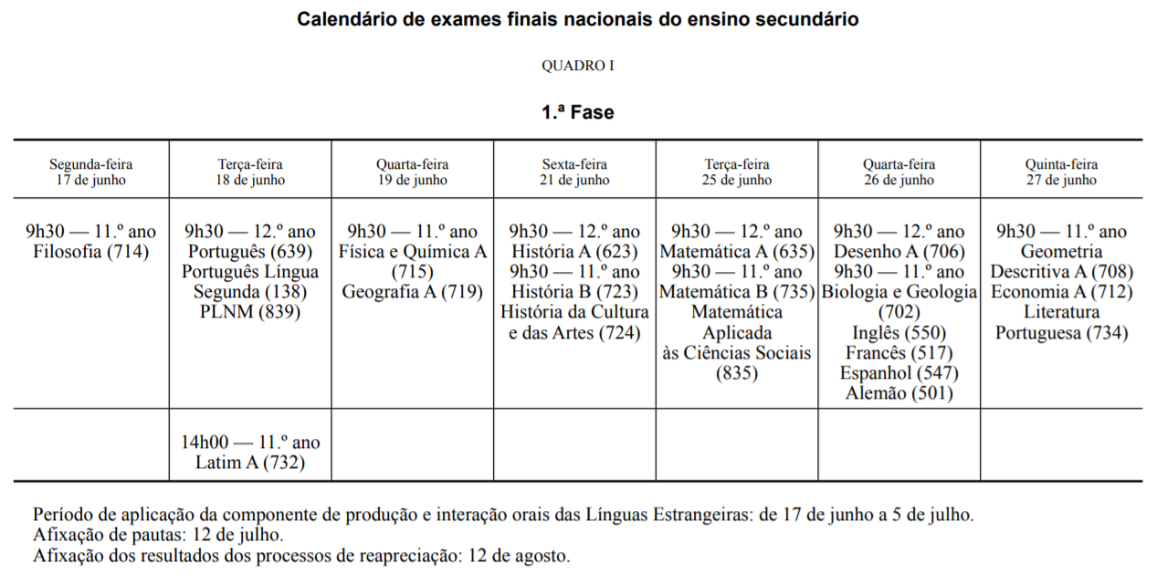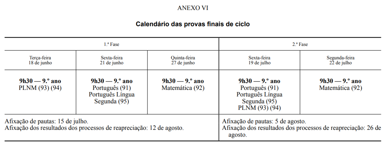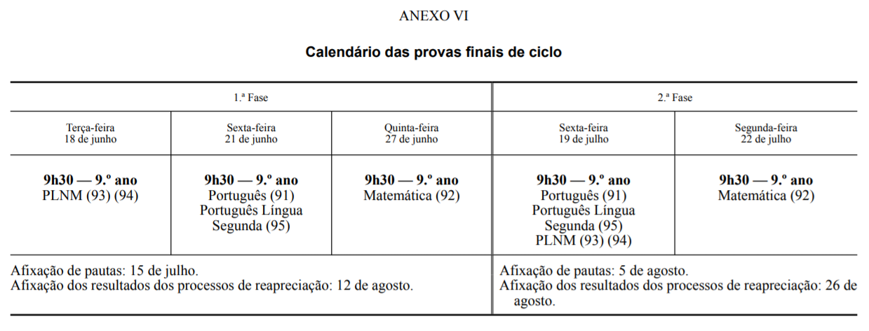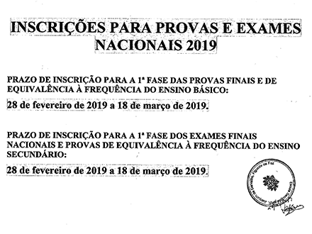 Calendário de Exames e Provas de Equivalência à frequência