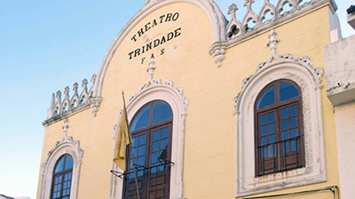 "Construído em 1910, no local do antigo Teatro do Celeiro dos frades de Santa Cruz de Coimbra, foi seu promotor Fernando Augusto Soares, grande benemérito local, juntamente com sua mulher, Dona Trindade Penha Soares, de quem tomou o nome. Contemporâneo da época de ouro do teatro português, e acompanhando a actividade cultural da primeira metade do século XX, o Teatro Trindade conferiu a Buarcos um novo espaço recreativo que levou à cena algumas peças de pendor crítico tão ao gosto da sociedade da época. Inspirado no teatro homónimo de Lisboa, mas numa escala mais proporcional ao local, o Teatro Trindade apresenta uma decoração interior de alguma simplicidade demonstrativa, contudo, do requinte e bom gosto do seu benfeitor. No teto destaque para os medalhões esculpidos em baixo relevo, e um elegante lustre, outrora de puro cristal. No arco do proscénio, destacam-se as figuras laterais a meio corpo e a alegoria central às Artes: Teatro, Música e Poesia. Exteriormente, apresenta uma elegante fachada, de feição marcadamente neomanuelina, correspondente ao gosto revivalista e romântico da época da sua edificação. Desde 1975 que é sede do União Football de Buarcos, coletividade criada em 25 de dezembro de 1921.Deste modo o edifício mantém a sua atividade teatral, constituindo um pólo dinamizador, cultural e recreativo desta freguesia."